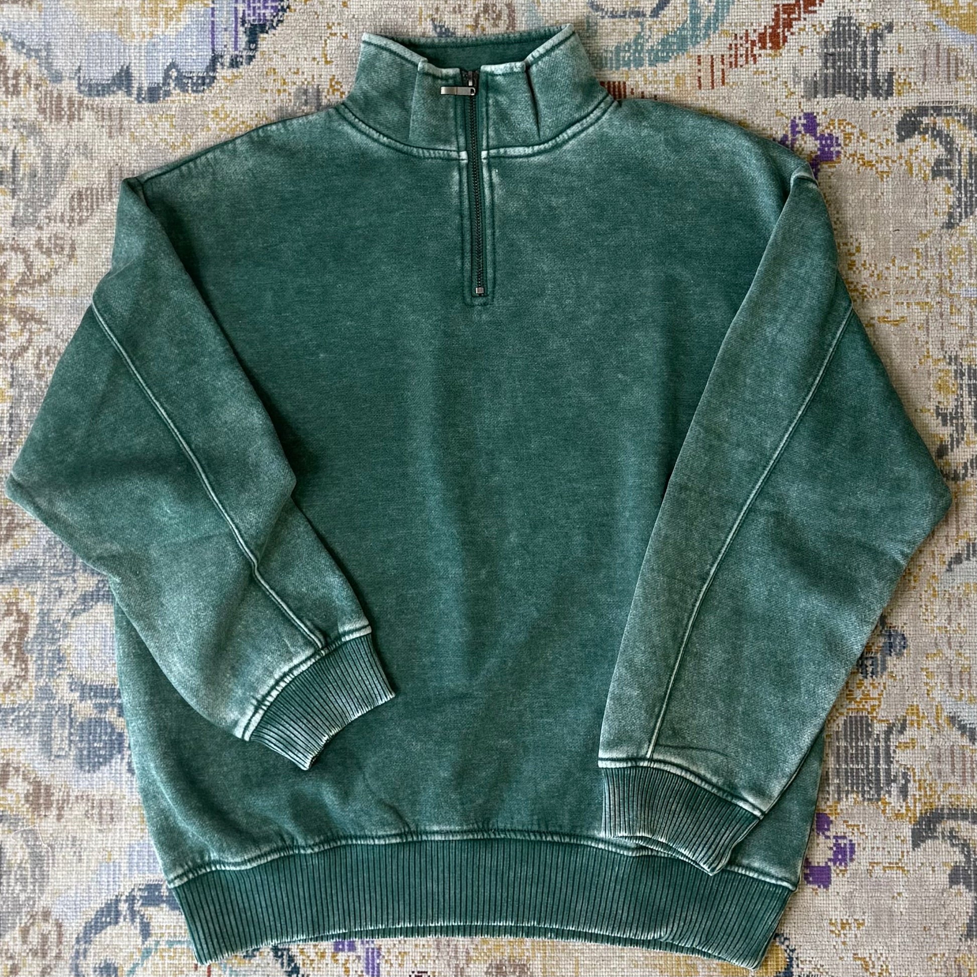 Stay cozy and cool in the Acid Wash Quarter Zip Pullover, featuring a trendy deep sky hue with a vintage-inspired acid wash finish. Its lightweight, soft fabric makes it perfect for layering on breezy days, while the quarter zip lets you adjust your style and comfort with ease. Whether you're out exploring or chilling at home, this pullover adds a splash of fun and flair to your casual wardrobe.