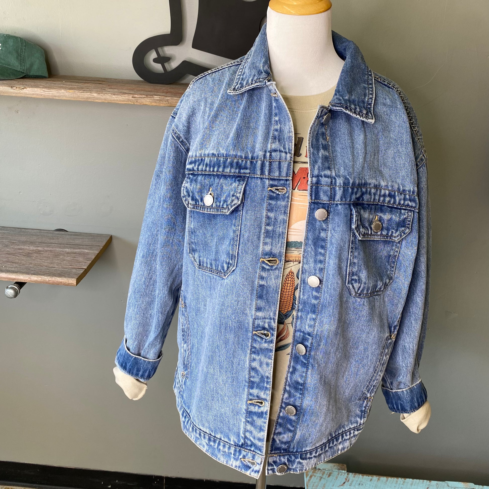 Step into effortless cool with this light denim oversized jacket. Its roomy fit lets you layer up or just relax in style, perfect for adding a chill vibe to any outfit. Whether you're heading out for a casual day or a spontaneous adventure, this jacket brings a laid-back charm that'll keep you cozy and looking fresh all day long.